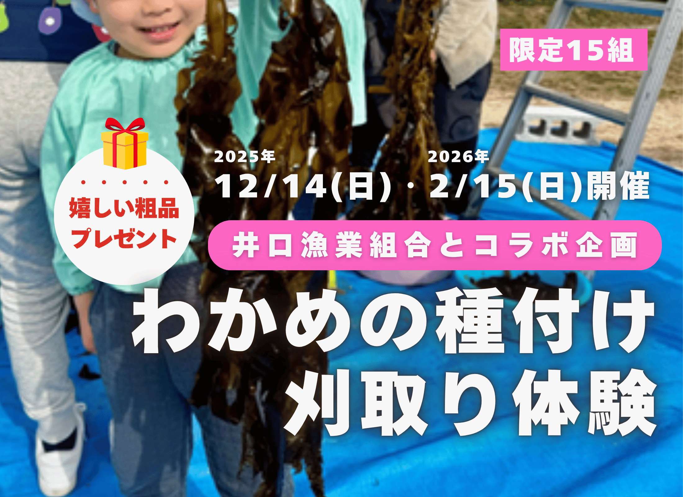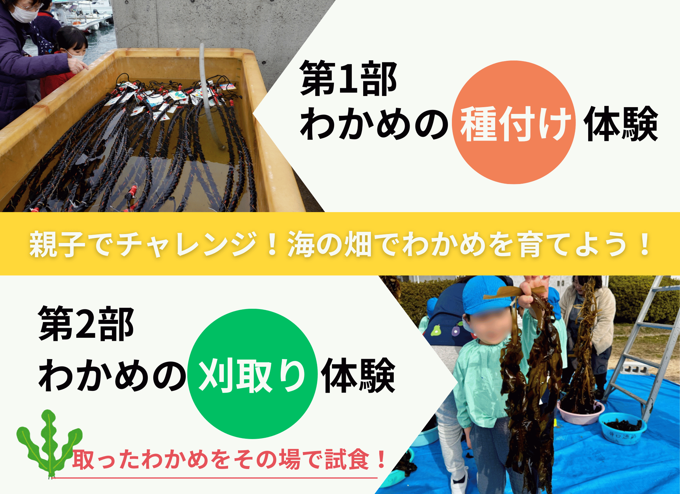 成長したわかめを収穫する「刈取り体験」の両方を楽しめる、親子で参加できる特別な体験イベントです。